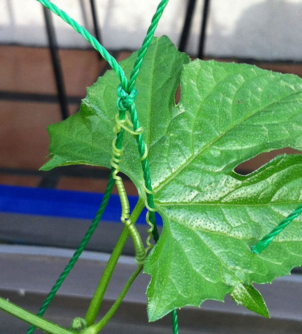 小さな花やツボミは西(お日様のある方)を向いて咲いてるけれど、ツルは東にあるネットにしっかり巻きついてるo(^▽^)oよ!