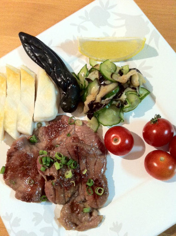お土産(自分で買いました)の牛タンを、留守番してたnat'sに食べさせたら、あおぞらで「牛タン定食」やろっか?!