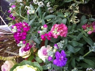これから暫く寒〜い日が続きますが、冬の寒空の下、三色のストックがお客様をお出迎え致します。
