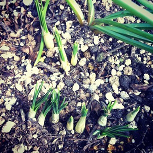 ミニバラの奥に手ぇ入れて春苗を定植させたり、土をほじってバーグを除けたり、枯葉を取ったり肥料をやったり…