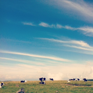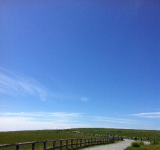 高原に放牧された牛。180℃広がる空。大自然の涼風に吹かれて