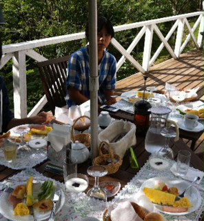 宿は車山高原。朝には雲海を望めるデッキで朝食。