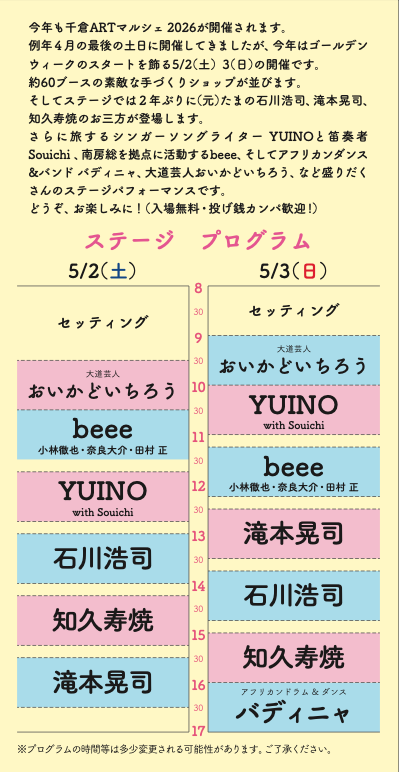 【千倉アート&ミュージックマルシェ 2026】https://uminekodo.exblog.jp