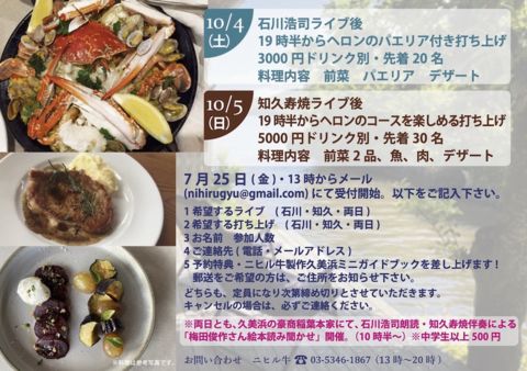 18:30/19:30 4800/5300円+オーダー 二日間通し券 9000円+オーダー