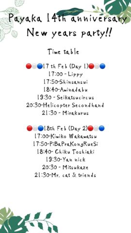 【パヤカ14周年記念&新年パーティー!!】2/17-18開催