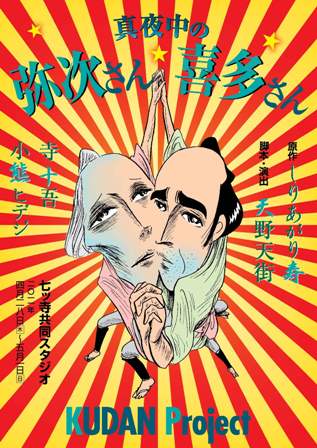 KUDAN Projectによる二人芝居『真夜中の弥次さん喜多さん』は、映画に先がける2002年に国内初演されました。上演時には、漫画と演劇という異なるジャンルの大きな才能の出会いとして話題を呼び、上演後は、全く新しい演劇体験として驚きと共に絶賛され、その年のベストプレイ候補に数多く推挙されました。