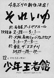 後援: 名古屋市教育委員会 - 大阪公演 1998年3月6日(金)〜8日(日)於: 扇町ミュージアムスクエア(扇町ミュージアムスクエア提携公演)