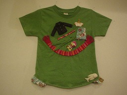 実際に着せられる人形の服と小物を作ってコラージュ。