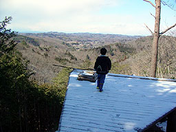 広場の脇の階段(この階段も作った)を登ると尾根に出る。