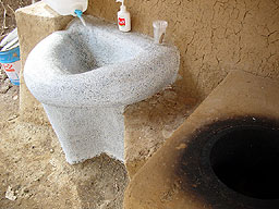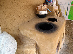 ベンチは日干しレンガで、色粉を混ぜた土で左官仕上げ。
