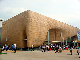 あちこちの「万博に行ってきたよ」レポートで見かけるスペインパビリオンの外壁。