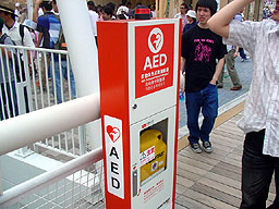 会場のあちこちで見かけたAED。