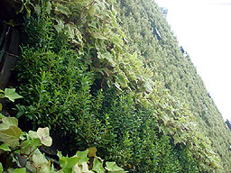 屋上緑化の論理で気温が1度だか2度だか下げるってやつで、水平ではなく垂直にして面積をかせごうというもの。