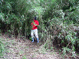 どこも一緒に見えた薮も、手を入れていくと斜面の多い場所、そうでない場所などいろいろで、そういった地形によって笹(篠竹)自体も生え方も違う。