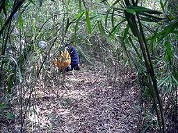 広場を作ったり、急斜面に道や階段を作ったり、尾根に数十人載れる見晴らしデッキを作ったりと毎回まったく違ういろいろな「場」をいぢっているこのワークショップですが、今回の作業場は、笹薮(ささやぶ)。