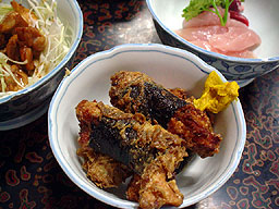 鳥のくわ焼き、鳥の磯揚げ、鳥のみぞれ和え、鳥の刺身、鳥のひと口カツ、鳥の赤出し、鳥の霜降り…と鳥三昧。