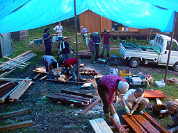 そのおのおのの意見を参考にしつつ、あらかじめスタッフが用意した設計図に基づき、材の準備。