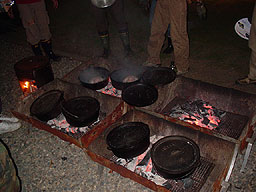 地中に立てる柱の、地中に埋める部分を焼いているところ。