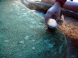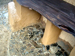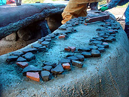 日干しレンガを重ねただけの足も、今回石を組んで見栄えを良くすることに。