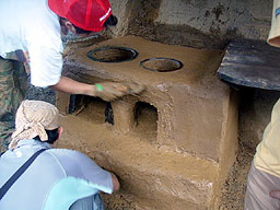 かまどは、内部が狭過ぎたため薪をくべることが難しく、排気の穴の位置も悪かったため、そのあたりを調整。