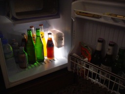 コンビニで買えば6〜7バーツ(20円)だけど、この冷蔵庫のものは当然割高で45バーツ(135円)なり。