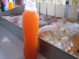 BTS(スカイトレイン)の駅にて、みかんニンジンジュース、35バーツ(105円)。