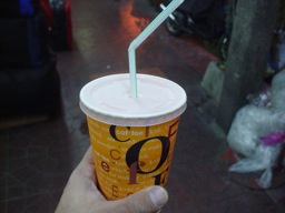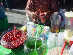 イモウトが「タイで飲んだスイカジュースがべらぼうに美味しかった」と言っていて、カオサン通りのインド料理屋の店先で見つけて注文(そんなに珍しいものではないのだけど)。