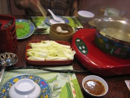 結局ルールはよく分かんないのだけど、周りを見ると、とにかくなんでも鍋に放り込んで、火が通ったものから好き好きに適当に食べてるみたいなので、気にせず食べた。