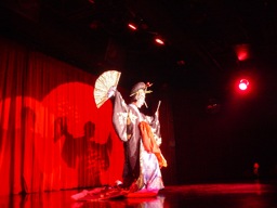 次々に美しいニューハーフが出てくる中、ゲイシャ役で「3枚目」が出てきたり。