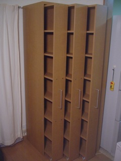 あと、今回、このスリム本棚を3本と、その3本を収納するボックス(ケース? 枠?)を一緒に購入したわけだけど、このボックスの方は、本当に「ケース」程度の役目でしかない。