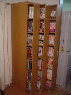 この本棚の購入を決めるにあたって、A5判の漫画やムックが入るだの入らないだのと書いたのだけど(本棚 - こらない)、そんなところに行き着く前に、いわゆる普通のコミックだけで埋まってしまった。