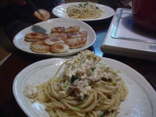 名古屋の某ライブハウス直伝の美味パスタと、カブ輪切り焼き。