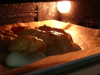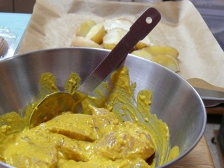 タンドリーチキンは、アタシが10年くらい前にメモっておいた「電子レンジで作るタンドリーチキン」のレシピを元に(もちろん電子レンジではなくオーブンで)。