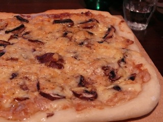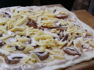 冷蔵庫に期限の過ぎた生クリームがあったので、マヨネーズと生クリームを混ぜただけのソースに、ツナ缶とブラウンマッシュルームを加えて、高級風ツナマヨピザも作ってみた。