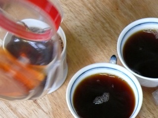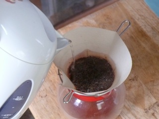 そのままやっこはうちに宿泊し、翌日お土産のコーヒーフィルタセットを使って、やっこおすすめのコーヒーを飲む。