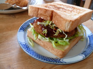 2人しかいないのに4人前も作ってしまったので、翌朝、メンチカツサンドに。
