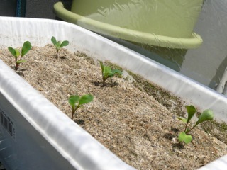 間引いたやつを別のプランターに植え替えてみた(植え替えた翌日の写真)。