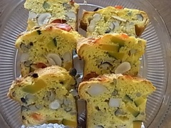 ●本日のケークサレ…しめじ・エリンギ・マッシュルーム・かぼちゃ・トマト・玉ねぎ カレー風味