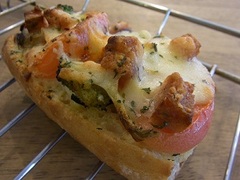 タルティーヌはお店の名前でもあるのですが、本来バゲットを半分にしてそこに何か(バターとか、ジャムとか、ベシャメルとか。なんでも)のせて食べる食べ物のことを言います。